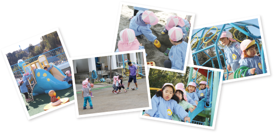 園庭でお友だちや先生と遊びます。