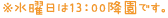 ※他に、行事等により午前保育 9:40~11:00(給食なし/年6回程度)等あります。