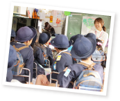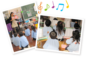 朝の会では、歌を唄ったり、当番活動をします。又、出席をとり、出欠状況をしっかりと確認しています。一斉保育ではリトミックや製作など、学年に応じたカリキュラムに沿って保育を行います。