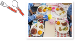幼稚園内の給食施設で作られた、バランスの摂れた給食をお友だちと楽しく食べます。メニューには旬の食材や、季節のメューが取り入れられています。