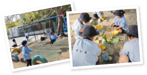 担任の先生や、他のクラスのお友だちと広い園庭で自由遊び。
