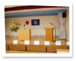 はじめての制服を着て親子登園をし、講堂にてなごやかな入園式を行います。